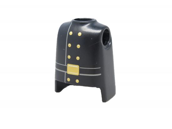 Oberkörper Mann schwarz mit goldenen Knöpfen und Gürtelschnalle